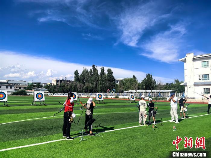 6月17日,学生正在位于新疆伊犁的察布查尔锡伯自治县射箭运动学校训练。张杨彬摄