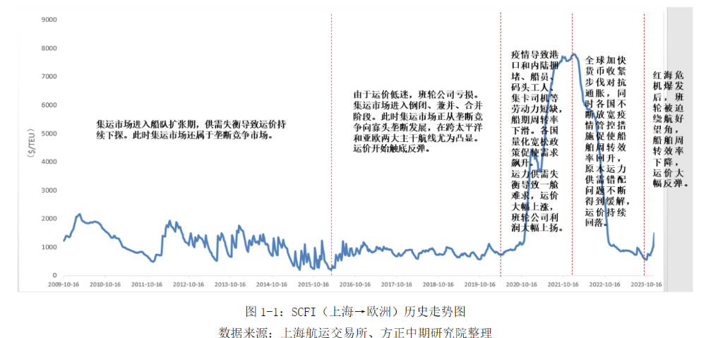 回溯到欧线集运期货去年12月的第一波大涨,方正中期期货分析师陈臻、王骏指出,从2023年11月起,班轮公司试图提价,为了能在即将到来的2024年度合约谈判中赢得主动权。同时,巴以冲突爆发,胡塞武装对也门以色列籍以及挂靠以色列港口的船舶进行攻击,导致大批商船被迫绕航好望角,船舶周转效率下降30%左右,运力紧张,舱位爆舱,运价连续上涨4-5轮。